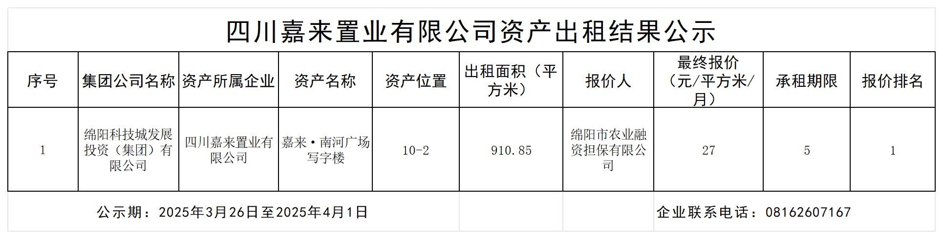 四川嘉来置业有限公司资产出租效果公示