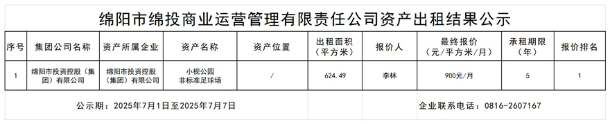 绵阳市BB电子·(china)有限公司官网商业运营治理有限责任公司资产出租效果公示