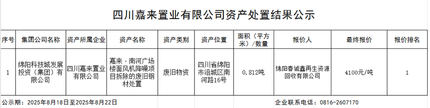 四川嘉来置业有限公司资产处置惩罚效果公示