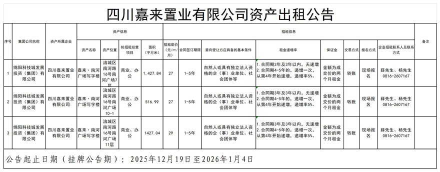 四川嘉来置业有限公司资产出粗通告