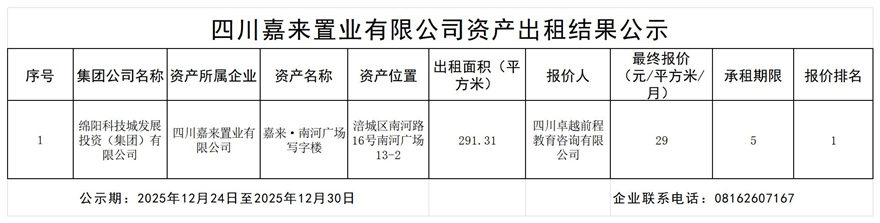 四川嘉来置业有限公司资产出租效果公示