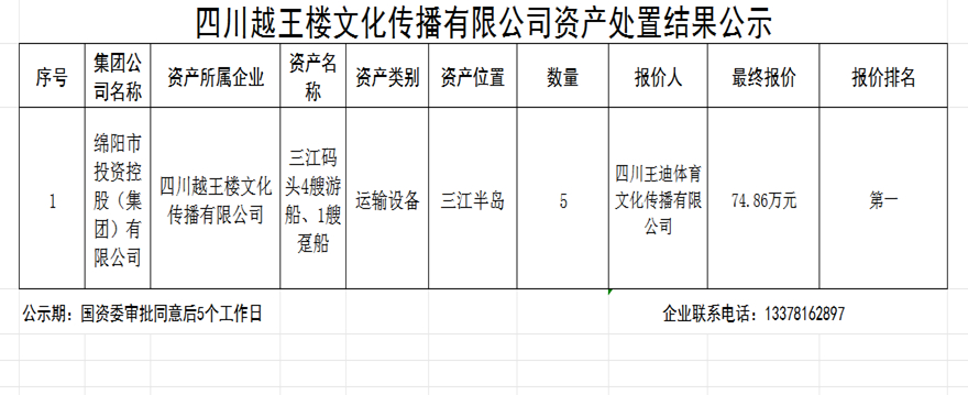 四川越王楼文化撒播有限公司资产处置惩罚效果公示