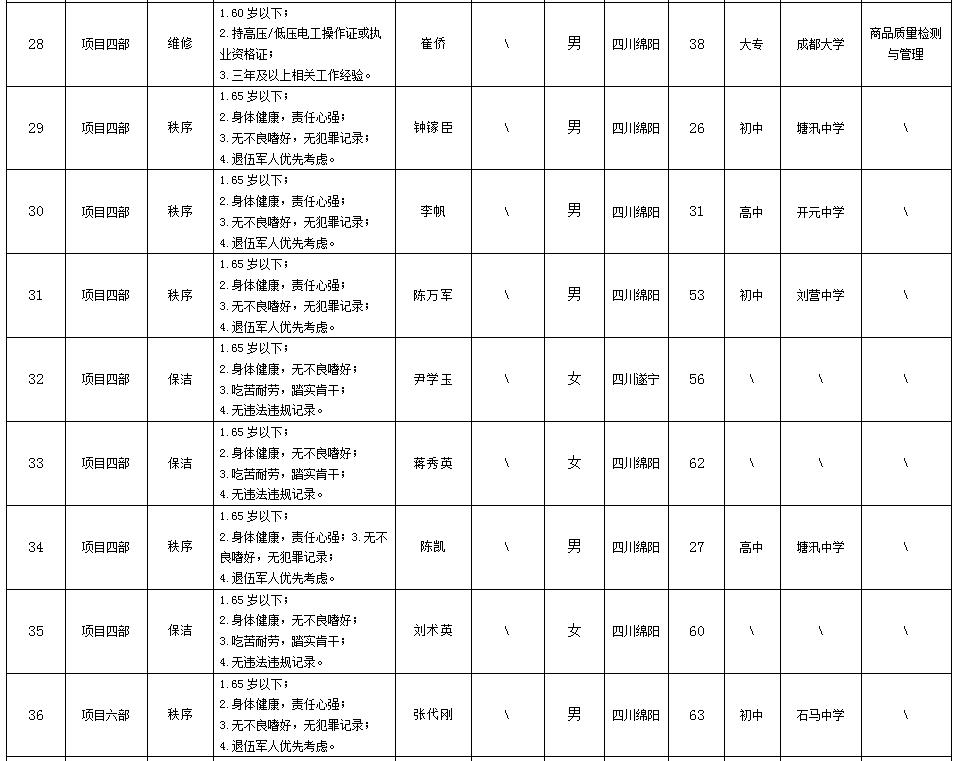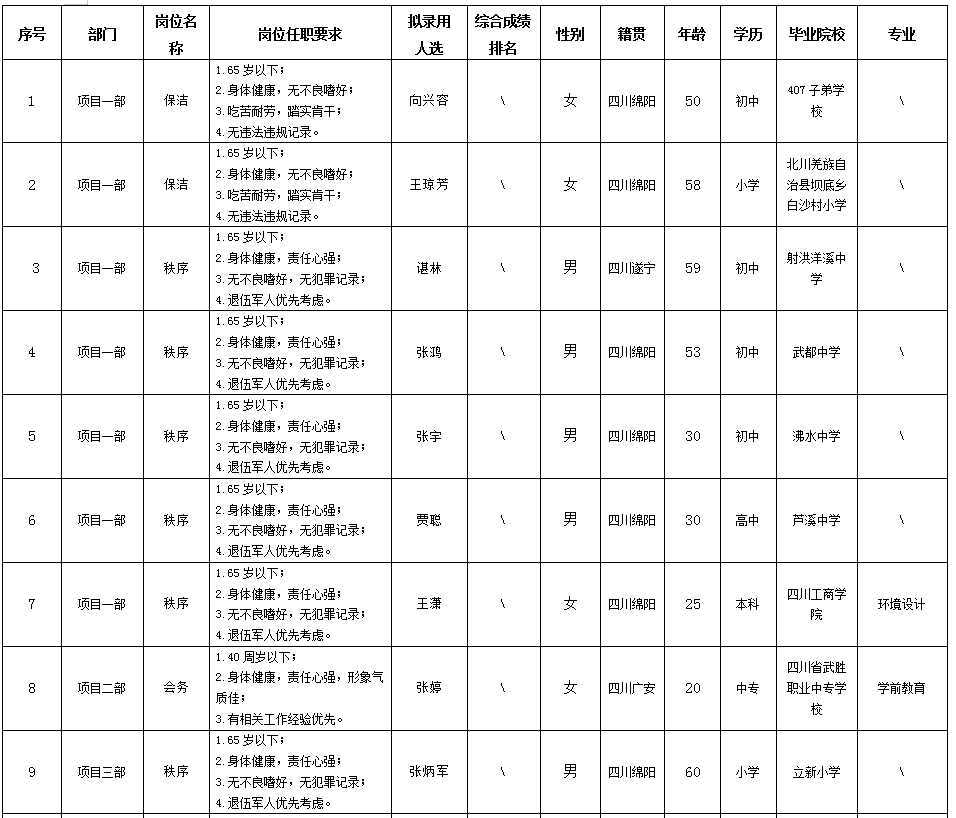 【果真招聘】绵阳市康来物业效劳有限公司关于招聘各项目部秩序等项目一线岗位拟任命职员的公示