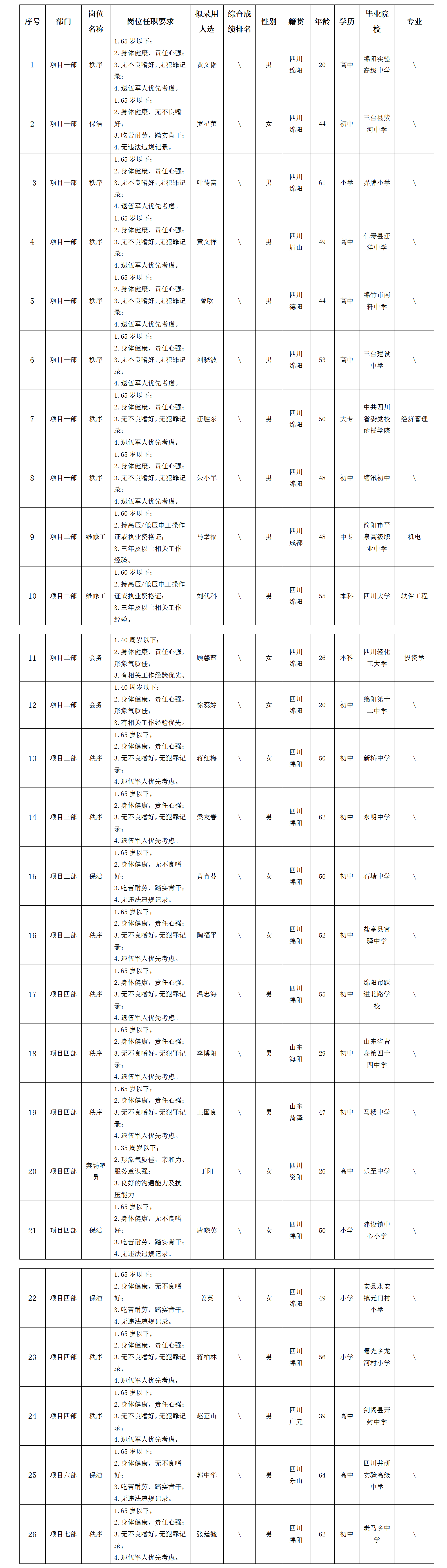 【果真招聘】 绵阳市康来物业效劳有限公司关于招聘各项目部秩序等项目一线岗位拟任命职员的公示