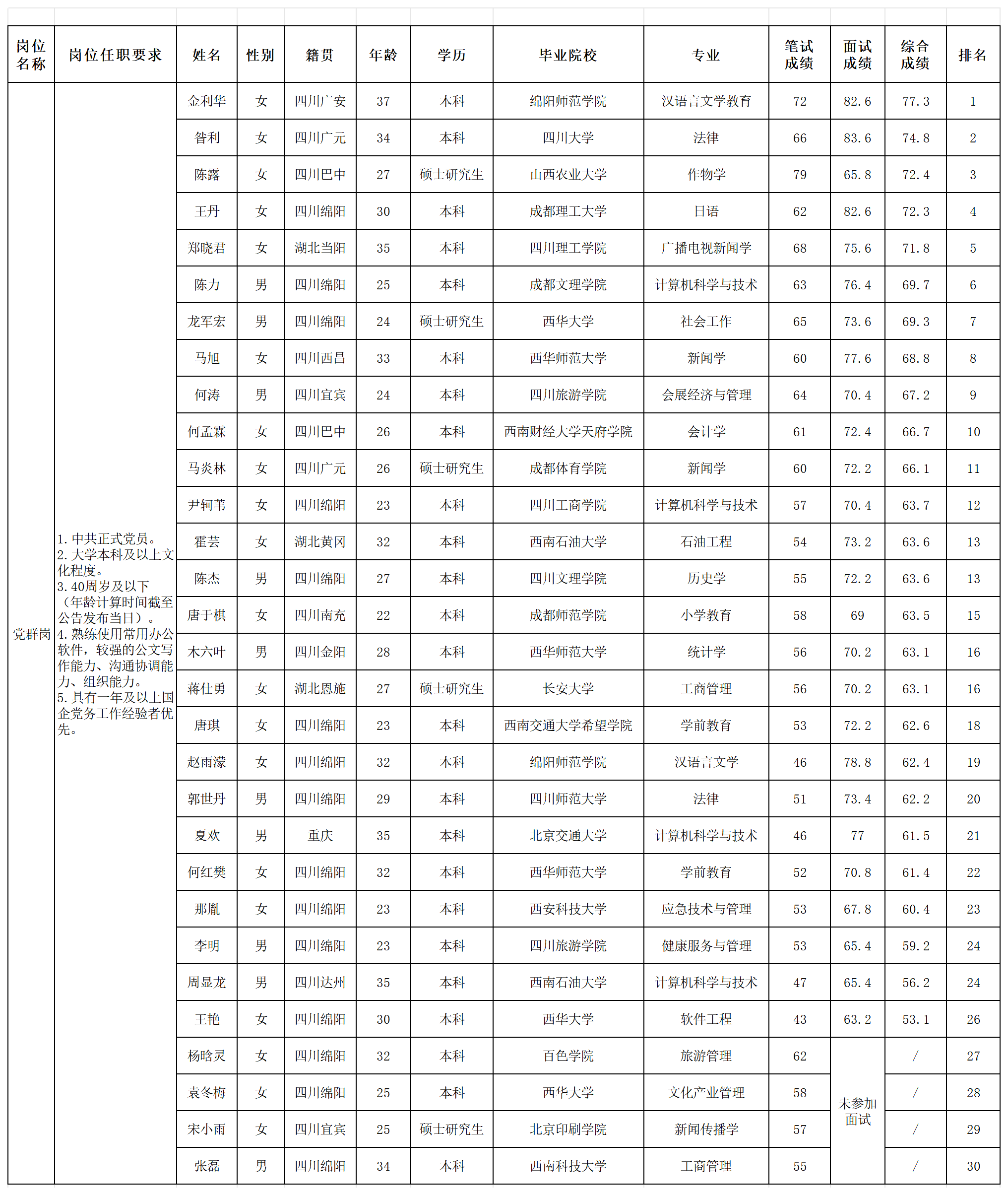 【果真招聘】四川越王楼文化撒播有限公司关于招聘党群岗测试效果的公示