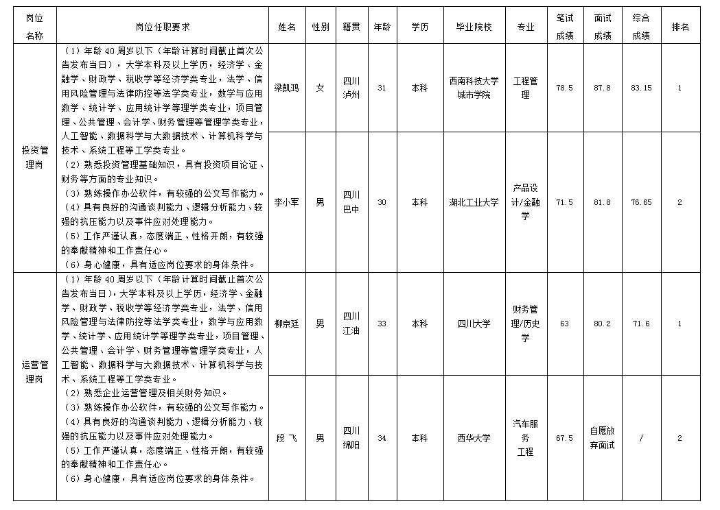 凭证BB电子·(china)有限公司官网宣布的招聘通告及招聘相关划定,,,,,,,,经笔试、面试等程序,,,,,,,,现将笔试(面试)效果予以公示。。。。。。。