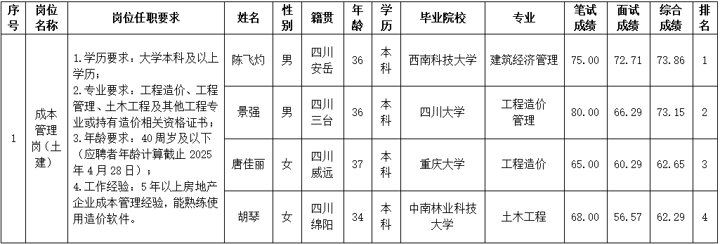 凭证绵阳市BB电子·(china)有限公司官网置地有限公司宣布的招聘通告及招聘相关划定,,,,,,,,经笔试、面试等程序,,,,,,,,现将笔试、面试效果予以公示。。。。。。。。