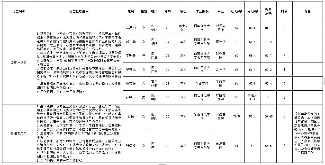 凭证绵阳市都会停车治理有限公司宣布的招聘通告及招聘相关划定,,,,,经笔试、面试等程序,,,,,现将笔试(面试)效果予以公示。。。。。