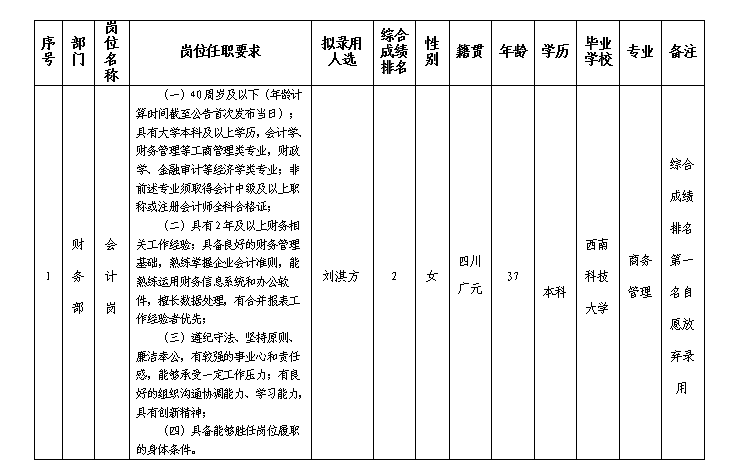 凭证绵阳金控投资治理有限责任公司宣布的招聘通告及招聘相关划定,,,,,经笔试、面试、背调、体检等程序,,,,,拟任命刘淇方到绵阳金控投资治理有限责任公司事情,,,,,现予以公示,,,,,详细情形如下: