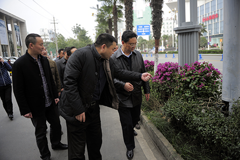 18日,,,,,,市委常委、副市长刘少敏带队前往花园路、机场直通道、剑南路、二环路等地,,,,,,实地调研集团“漂亮绵阳”绿化项目建设和景观刷新提升事情希望情形。。。。。。集团董事长肖林陪同调研,,,,,,并就集团漂亮绵阳项目的开展情形举行了汇报。。。。。。