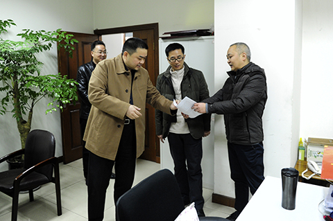 14日上午,,,,,,,,节后上班第一天,,,,,,,,集团董事长肖林、党委书记陈建强深入集团本部各部分、所属金控公司、水务集团三水厂探望慰问集团公司职工,,,,,,,,向各人送去节日的问候,,,,,,,,就节后事情情形举行详细相识,,,,,,,,对新一年的事情提出要求。。。。。。集团副总司理黄小秋加入慰问。。。。。。