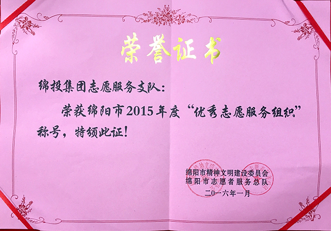 克日,,,,,,,BB电子·(china)有限公司官网集团自愿效劳支队获得绵阳市精神文明建设委员会、绵阳市自愿者效劳总队表扬,,,,,,,荣获