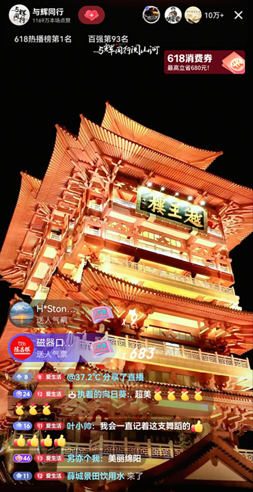 运动前夕,,,,,,,,越王楼公司起劲与主管部分、承办单位以及董宇辉团队相同协调,,,,,,,,乐成争取以“天下诗文第一楼”越王楼实景为舞台配景,,,,,,,,并在直播间上架越王楼门票。。。。。