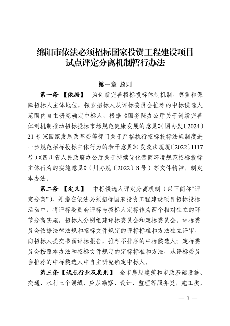 绵阳市依法必需招标国家投资工程建设项目试点评定疏散机制暂行步伐(2025.2.28宣布)